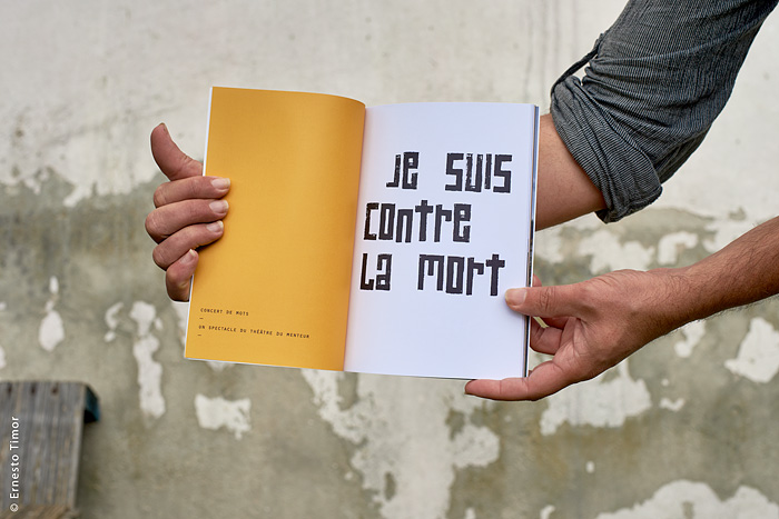 Ernesto Timor accompagne les créations du Théâtre du Menteur depuis plus de 12 ans. Au-delà de la réalisation graphique de cet ouvrage et du travail photographique lié au spectacle, il a mené en duo avec François Chaffin un nouveau side-project singulier en écho à Je suis contre la mort : les Salles d’attente, série de courts films photographiques à retrouver sur le bonus multimédia.