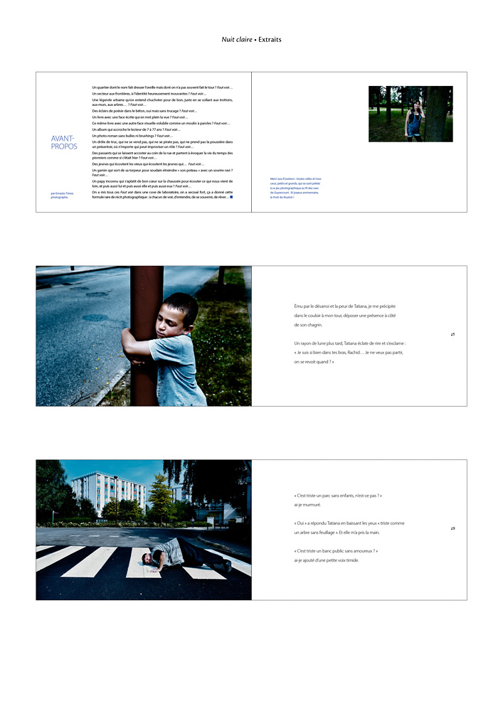 Je réalise des livres depuis une vingtaine d’années, à différents niveaux d’implication (suivi éditorial, relecture, création graphique, montage de la maquette, photogravure, suivi de fab… et illustration photographique), pour le compte d’éditeurs ou en direct pour des collectivités territoriales, des entreprises, des structures de spectacle vivant…